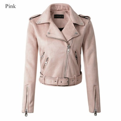 Arrial Women Autumn Winter Suede Faux Leather Jackets Lady Matte Motorcycle Coat Biker Gray Pink Beige Outwear