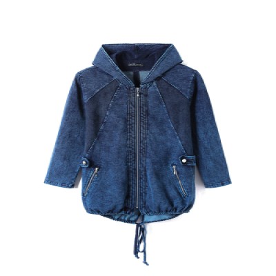 LIH HUA Women's Plus Size Denim Jacket Fall Casual High Stretch Hoodie Cotton Knit Jacket
