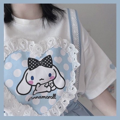 Sanrio Streetwear Cinnamoroll Lace T Shirts For Women Girls Tshirt Student Harajuku Kawaii Cute Lolita Loose Vintage Clothes Top