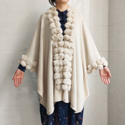 Trend Women Rabbit Fur Poncho Shawl Coat Long Knit Cashmere Cape Fur Sweater Pashmina Autumn Winter New