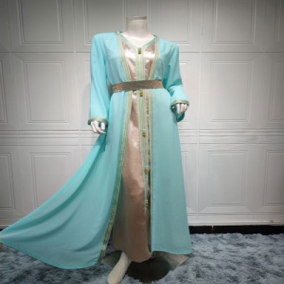 Abaya Woman Dubai Evening Dresses 2 Pieces Muslim Sets Clothes Long Robe Turkey Caftan Marocain Shiny Diamond Yellow Pink