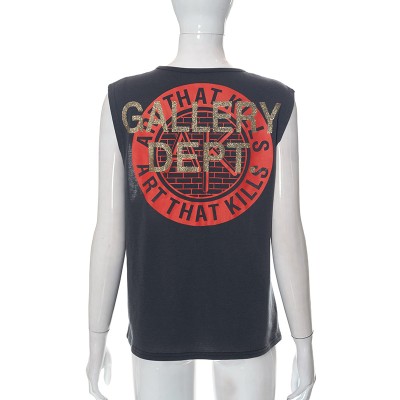 Summer Short T-Shirts Sexy Grey Women Sleeveless O Croptops Tank Tops Y2K Goth Crop Vest Letter Tie Dye Print Crop Tops