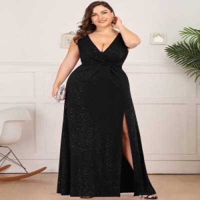 Plus Size Elegant Evening Dresses Long Straight V-Neck Sleeveless Floor-Length Gown Ever Pretty of Bridesmaid Women Dress