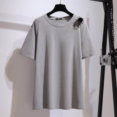150Kg Plus Size Women's Summer Loose Rivet Hole Short-Sleeved T-Shirt Bust 157cm 6XL 7XL 8XL 9XL 10XL Round Neck Top Black Gray