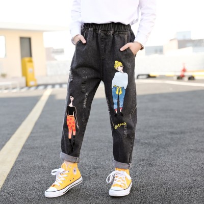 Cartoon Jeans for Girls Teenage Children Jeans Elastic Waist Denim Pants Kids Trousers for Girls Kids Clothes 4-13T