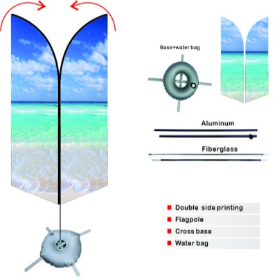 Beach Flag Double Sides Custom Feather and Teardrop Shape Outdoor Advertising Banner Custome Show Commercial Promotion