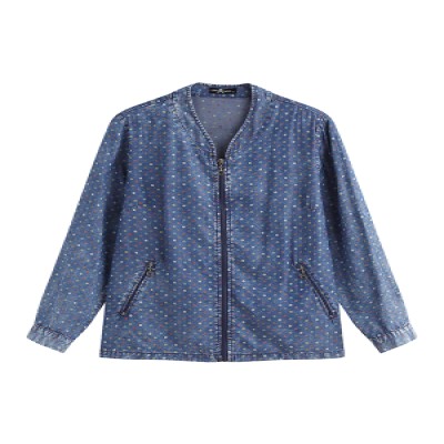 LIH HUA Women's Plus Size Denim Jacket Fall Casual Long Sleeve Zipper Pocket Woven Jacket