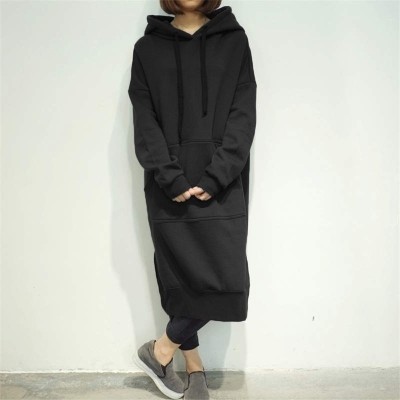 Women Casual Long Hoodies Autumn Winter Solid Color Drawsting Loose Hooded Sweatshirts Female Oversized Pockets Pullovers Top