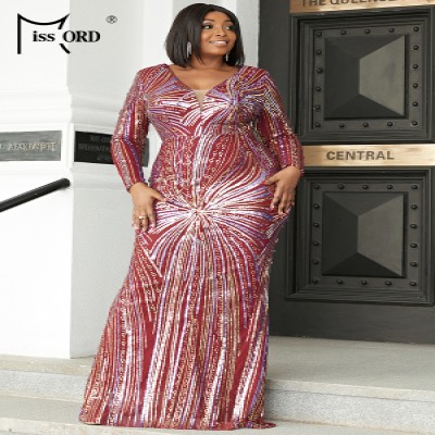 Missord Mesh Panel Sequin V Neck PLUS SIZE Dress Women Maxi Evening parti Bodycon Elegant Backless summer Burgundy Formal Dresse
