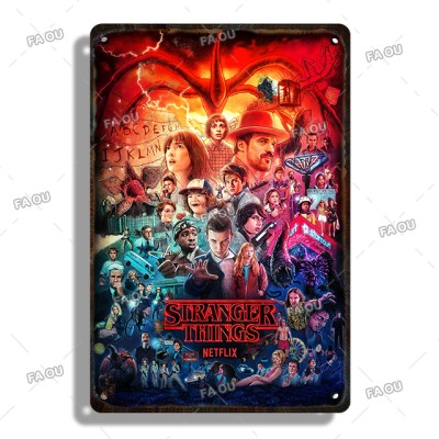 Stranger Things Movie Decorative Plaque Tin Metal Vintage Sign Cinema Bar Decoration Poster Board Home Wall Decor Aesthetic Gift