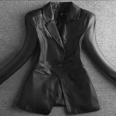 Lautaro Spring Elegant Black Light Soft Faux Leather Blazer Long Sleeve Slim Fit Women Blazers and Jackets