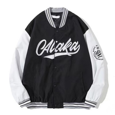American retro letter embroidery leather jackets coats women's street trend all-match baseball uniform couple loose top
