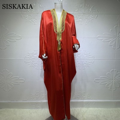 Muslim Kimono Abaya Velvet Gold Ribbon Batwing Sleeve Open Front Gown Dress for Women Arabic Moroccan Turkey Caftan