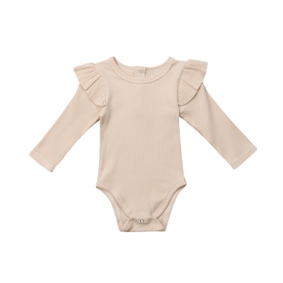 Newborn Infant Kids Baby Girls Autumn Causal Bodysuits Ruffles Long Sleeve Solid Warm Jumpsuits Outfit 0-24M