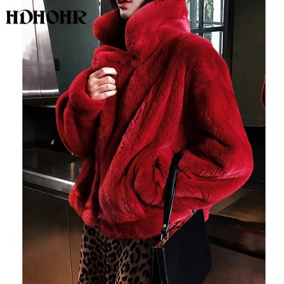 HDHOHR Real Mink Fur Coat Women Essential Natural Mink Coat Short Red Outerwear Winter Jacket