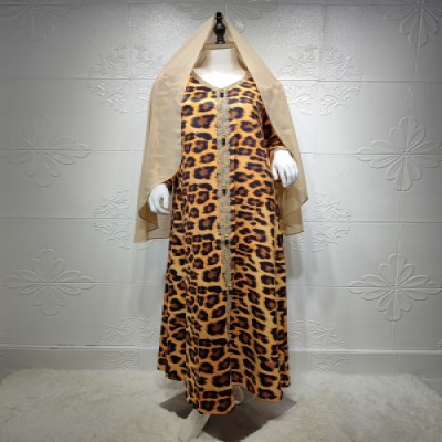 Muslim Ladies Leopard Robe Dress Middle East Dubai Arab Abaya Islamic Dress Tall Morocco Kaftan Turkish Long Skirt