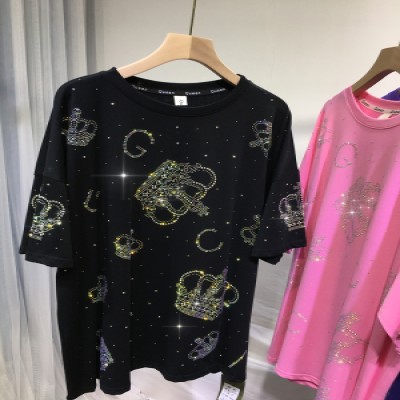 L-4XL Plus Size Tops Rhinestone Imperial Crown Large Size Tunic for Women Men Summer Outfits Women's Clothing Chubby Y2K