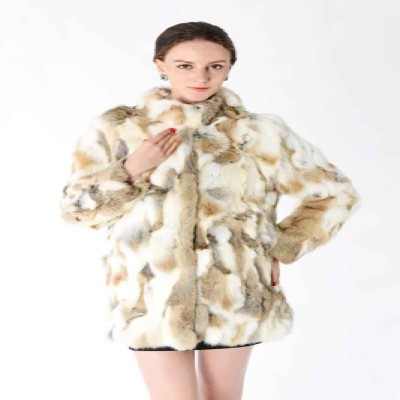 Women Real Rabbit Fur Coat Mandarin Collar Natural Fur Jacket Long Customize Female Dropshipping Overcoat HP147
