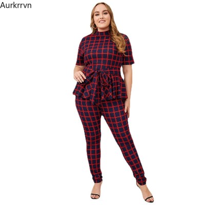 plus size summer outfits women clothing red plaid two piece sets tights Women tunic pencil pants summer outfits for women 4xl