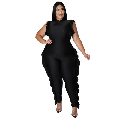 Plus Size Women Jumpsuits Summer Ruffle One Piece Outfit Bodycon Sleeveless Jumpsuits Sexy Lady Pant Wholesale