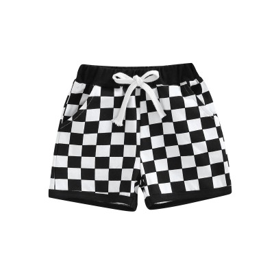 Summer Toddler Baby Shorts Checkerboard Print Elastic Waist Drawstring Short Pants Clothing 0-3T