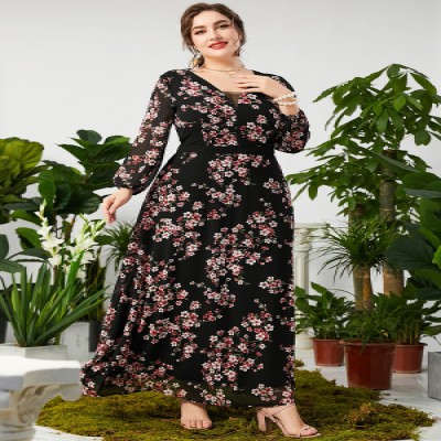 TOLEEN Women Large Plus Size Maxi Dresses Spring Pink Green Chic Elegant Long Sleeve Floral Evening Party Festival Clothing
