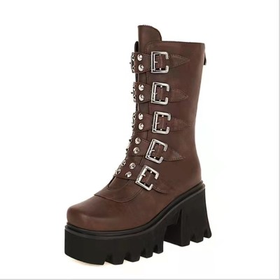 Ladies Punk Rock Platform High-heeled Boots with Thick-soled Platform Handsome Rear Zipper Large Size Stage Bootszapato